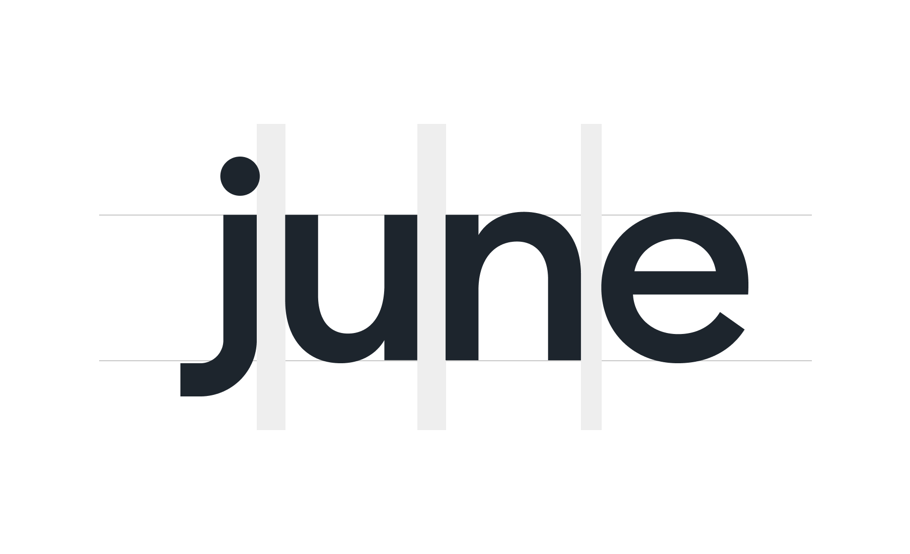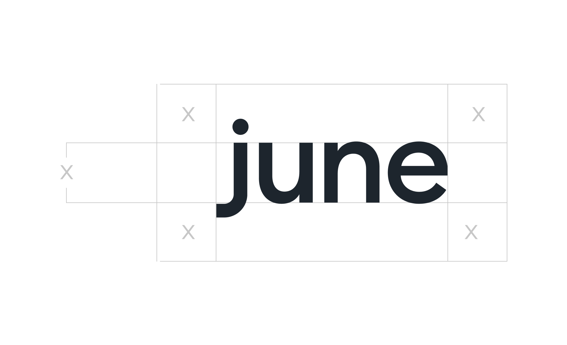 The June logo utilizes simple, recognizable shapes that find their inspiratoin from the physical product. It is carefully constructed to maintain ownable characteristics while still providing legibility at any size. Letters are optically kerned for visual balance.