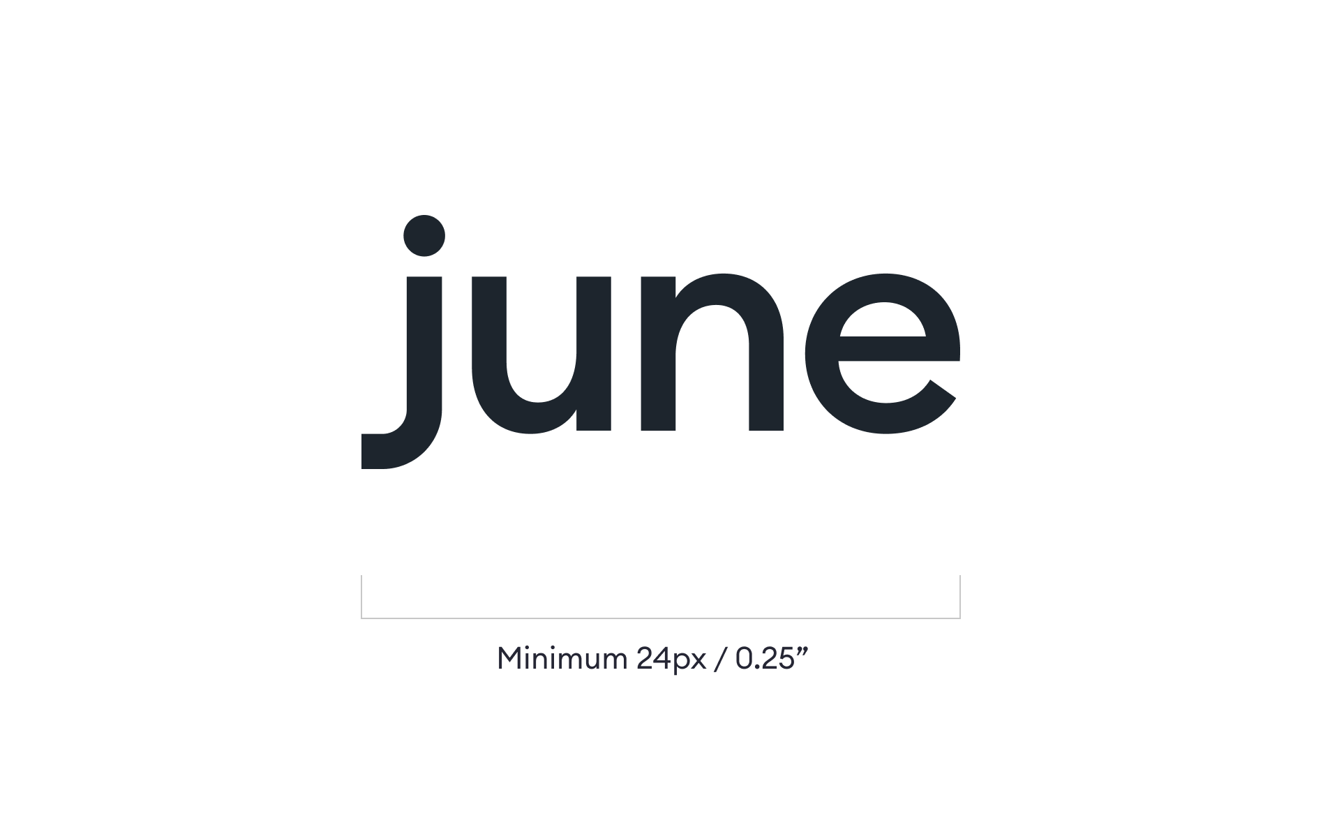 The June logo was designed to be used at very small sizes, for both print and digital. The smallest size the June logo may be used is 24px / 0.25” in width.