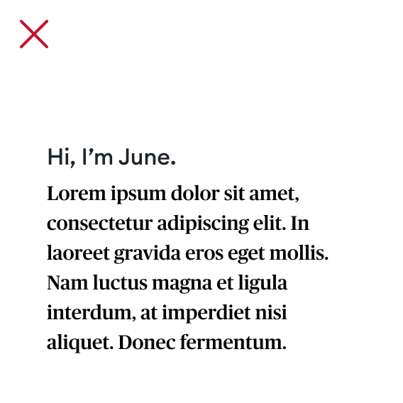 June's primary typeface is Euclid Circular B, Regular. For large bodies of copy such as sales copy, descriptions, blog posts, etc, Euclid Regular should be used.