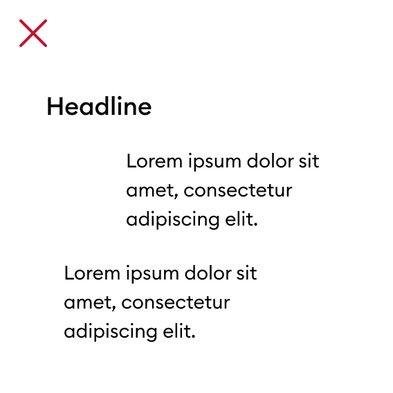 It is important to maintain visual hierarchy by use of scale and weight. Headers or headlines should always command more visual weight than corresponding body copy. At a minimum, headlines should be at least the same point size as the body copy and set in Euclid Medium. If the headline is scaled larger, either weight can be used so long as proper visual weight is achieved.