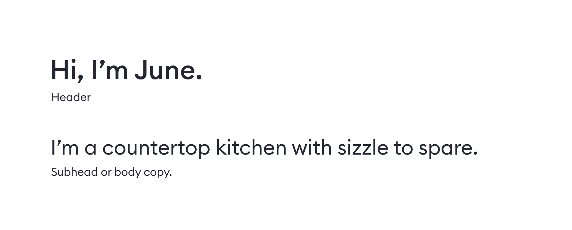When it comes to headlines, June keeps things interesting. Sometimes they come from the personal perspective of June (ex: Your kitchen and I are officially an item.), and sometimes it’s the voice of our brand (ex: Never send a stovetop to do a June’s job.). No matter what though, our headlines should always feel like they’re spoken by a friend.
