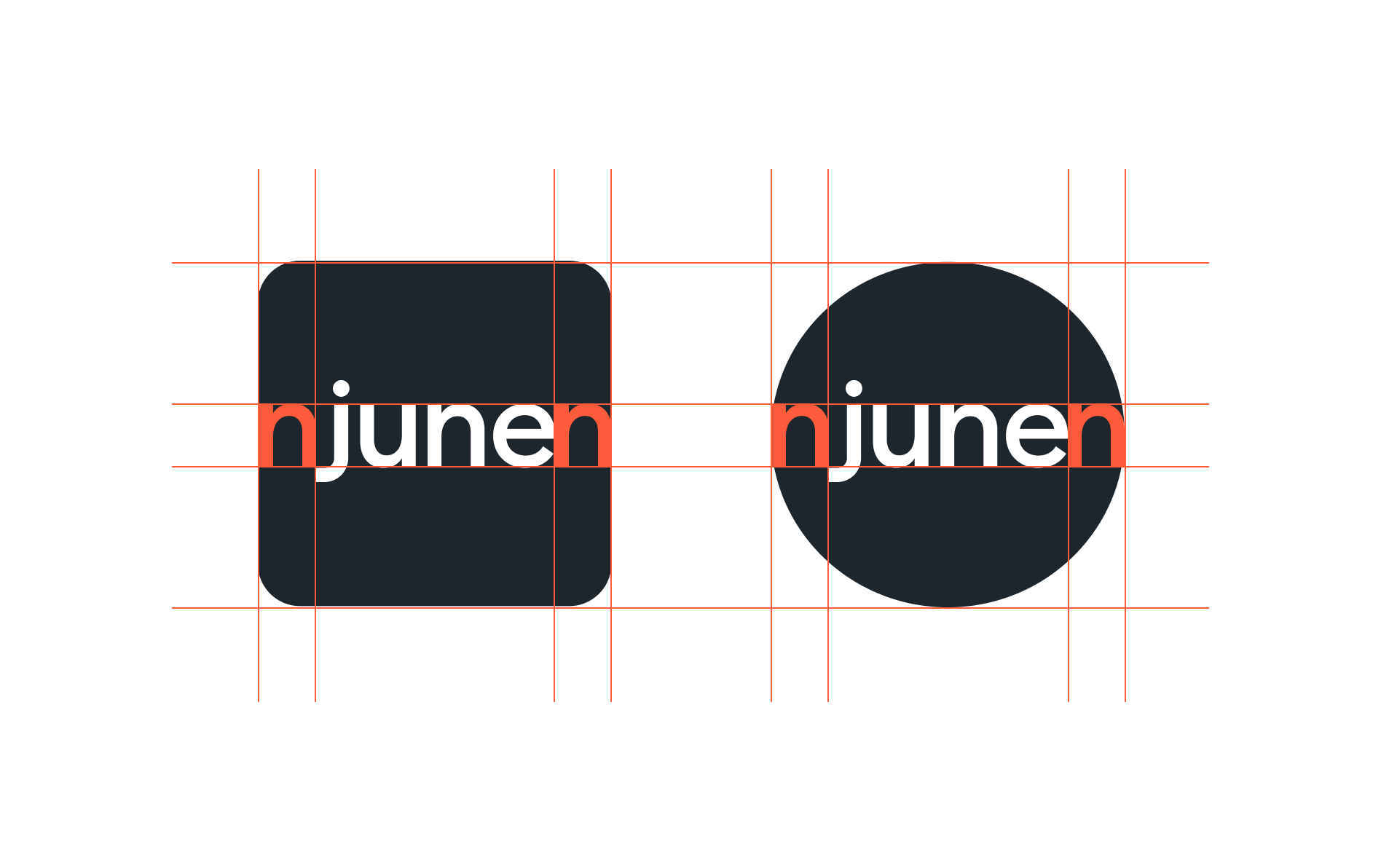 The x-height of the June logo should be centered vertically and horizontally in the icon shape, whether square or circular. Use the “n” in the logo as a guide for padding on the left and right.